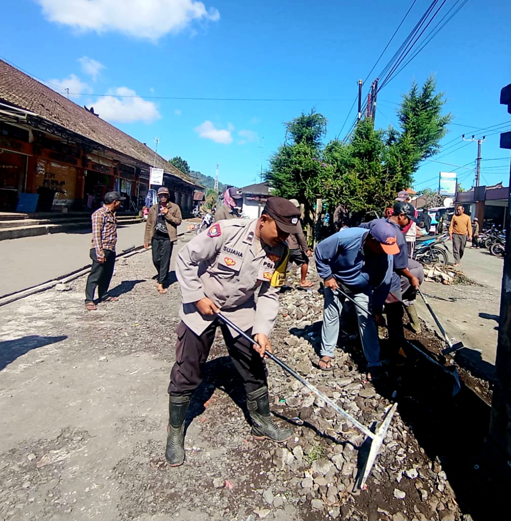 Kehadiran Bhabinkamtibmas dalam kegiatan ini merupakan bentuk dukungan Polri terhadap pembangunan desa sekaligus memperkuat sinergitas antara aparat keamanan dengan masyarakat. Selain membantu secara langsung, AIPDA Nyoman Mas Sujana juga memberikan motivasi kepada warga agar tetap menjaga semangat gotong royong serta kebersamaan dalam setiap kegiatan pembangunan.