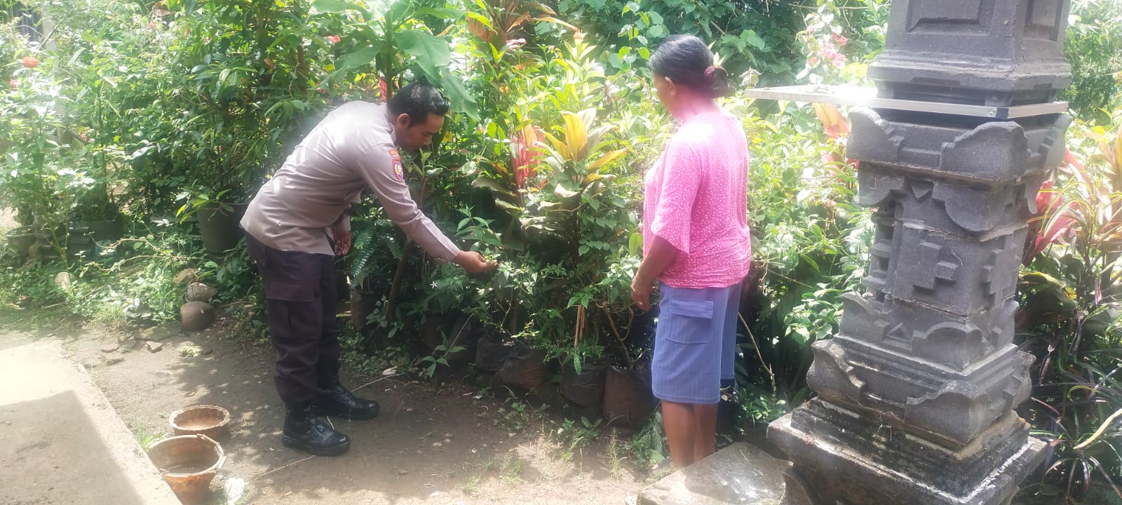 Melalui kegiatan sambang, Bhabinkamtibmas menyapa sekaligus memberikan motivasi kepada warga binaan, salah satunya Ketut Rediki, yang telah memanfaatkan lahan pekarangan rumahnya untuk menanam berbagai tanaman produktif seperti cabai, terong, dan jenis sayuran lainnya