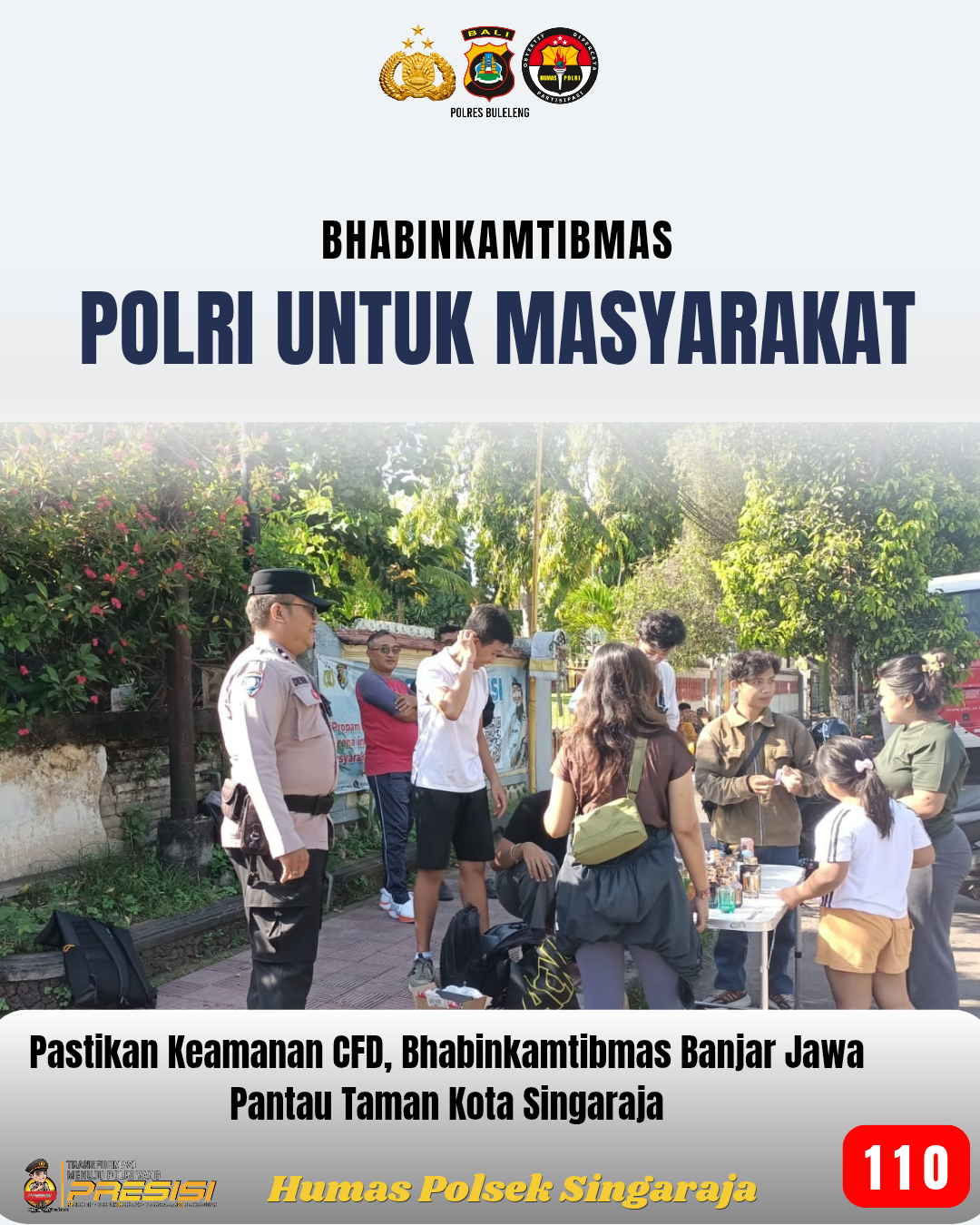 SINGARAJA – Suasana pagi di area Car Free Day (CFD) Taman Kota Singaraja berlangsung ramai dan kondusif pada Minggu (19/4). Guna memastikan keamanan dan kenyamanan warga yang sedang berolahraga, Bhabinkamtibmas Kelurahan Banjar Jawa, Aipda Dewa Putu Eka Atiawan, S.H., melaksanakan patroli pemantauan di sepanjang Jalan Ngurah Rai, Kecamatan Buleleng.