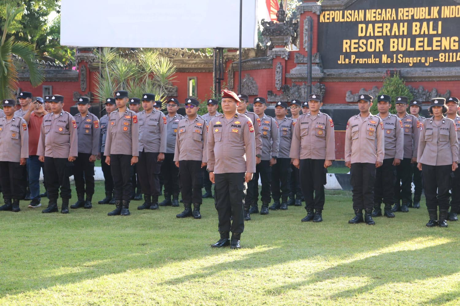 BULELENG – Kepala Kepolisian Resor (Kapolres) Buleleng, AKBP Ruzi Gusman, S.I.K., M.Si., M.T., M.Sc., memimpin langsung jalannya Apel Jam Pimpinan yang digelar di Lapangan Mapolres Buleleng pada Senin pagi (20/4/2026).