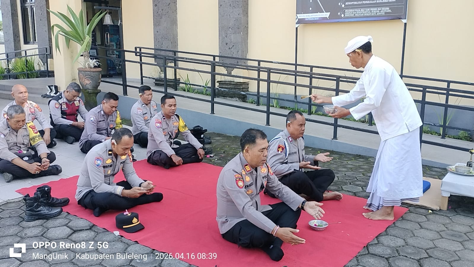 Kegiatan diikuti oleh Kanit Binmas, Kanit Propam, serta seluruh personel Polsek Busungbiu. Rangkaian persembahyangan berlangsung dengan tertib, meliputi Trisandya, Panca Sembah, Nunas Tirta, hingga penutup Parama Santi, yang dipuput oleh Jro Mangku Wayan Seriawan.