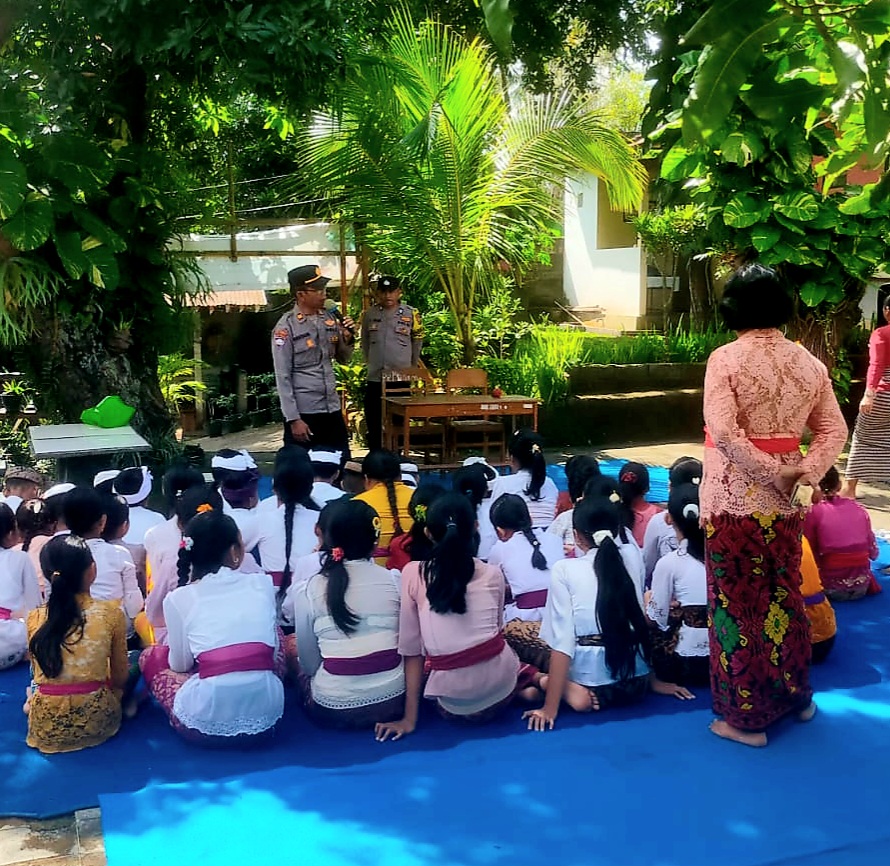 Kapolsek Sukasada Kompol I Wayan Sukarita, S.Sos seijin Kapolres Buleleng AKBP Ruzi Gusman, S.I.K., M.Si., M.T., M.Sc. dalam pernyataannya menyampaikan bahwa kegiatan Police Go To School merupakan salah satu langkah preventif Polri dalam membina generasi muda.