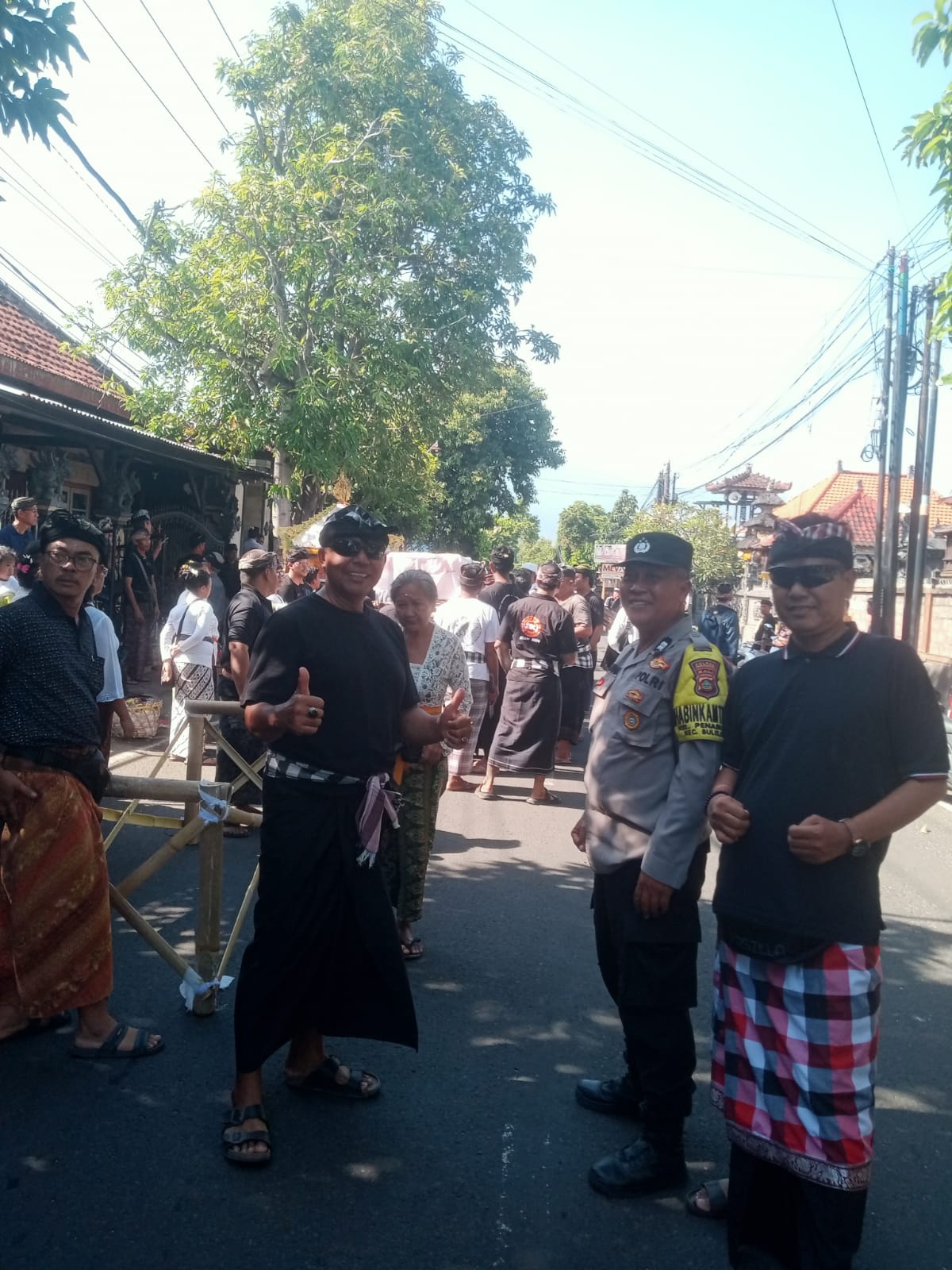 Aiptu Putu Adi Guna menyampaikan bahwa kehadiran Bhabinkamtibmas dalam setiap kegiatan adat merupakan bentuk sinergitas antara Polri dengan instansi adat seperti Pecalang.