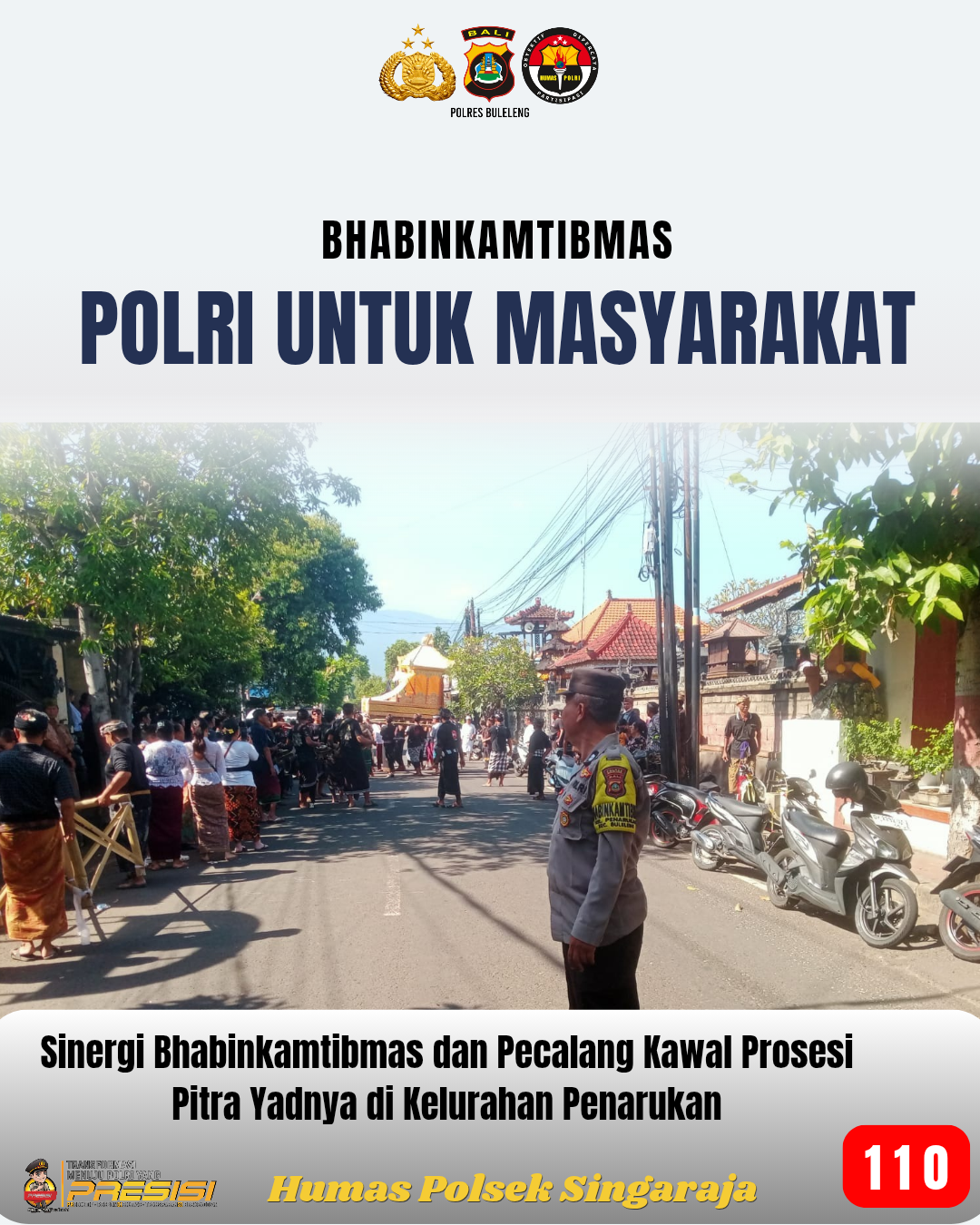 SINGARAJA – Menunjukkan wujud pelayanan prima dan penghormatan terhadap kearifan lokal, Bhabinkamtibmas Kelurahan Penarukan, Aiptu Putu Adi Guna, bersama unsur Pecalang melaksanakan pengamanan ketat dalam upacara Pitra Yadnya (ngaben), sabtu (19/4).