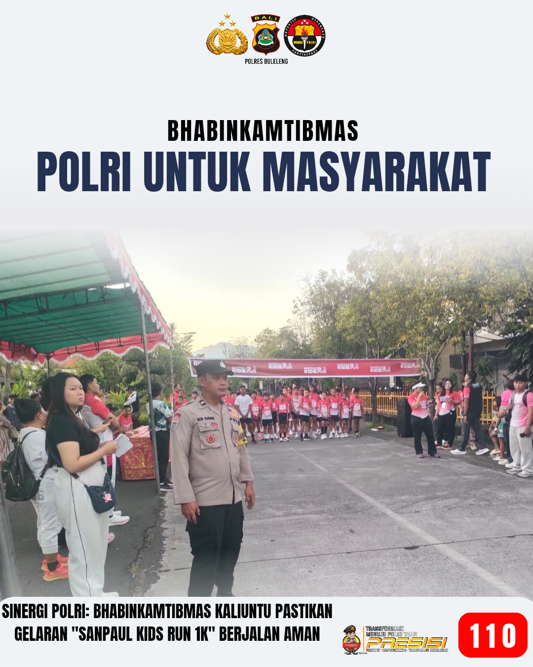 SINGARAJA – Keceriaan terpancar dari wajah ratusan peserta cilik dalam ajang Sanpaul Kids Run 1K yang digelar di kawasan Jalan Kartini, Kelurahan Kaliuntu. Guna memastikan keamanan dan kenyamanan para peserta serta pengguna jalan, Bhabinkamtibmas Kelurahan Kaliuntu, Aipda Made Sudira, turun langsung melaksanakan pengamanan pada Sabtu (18/04/2026) pagi.