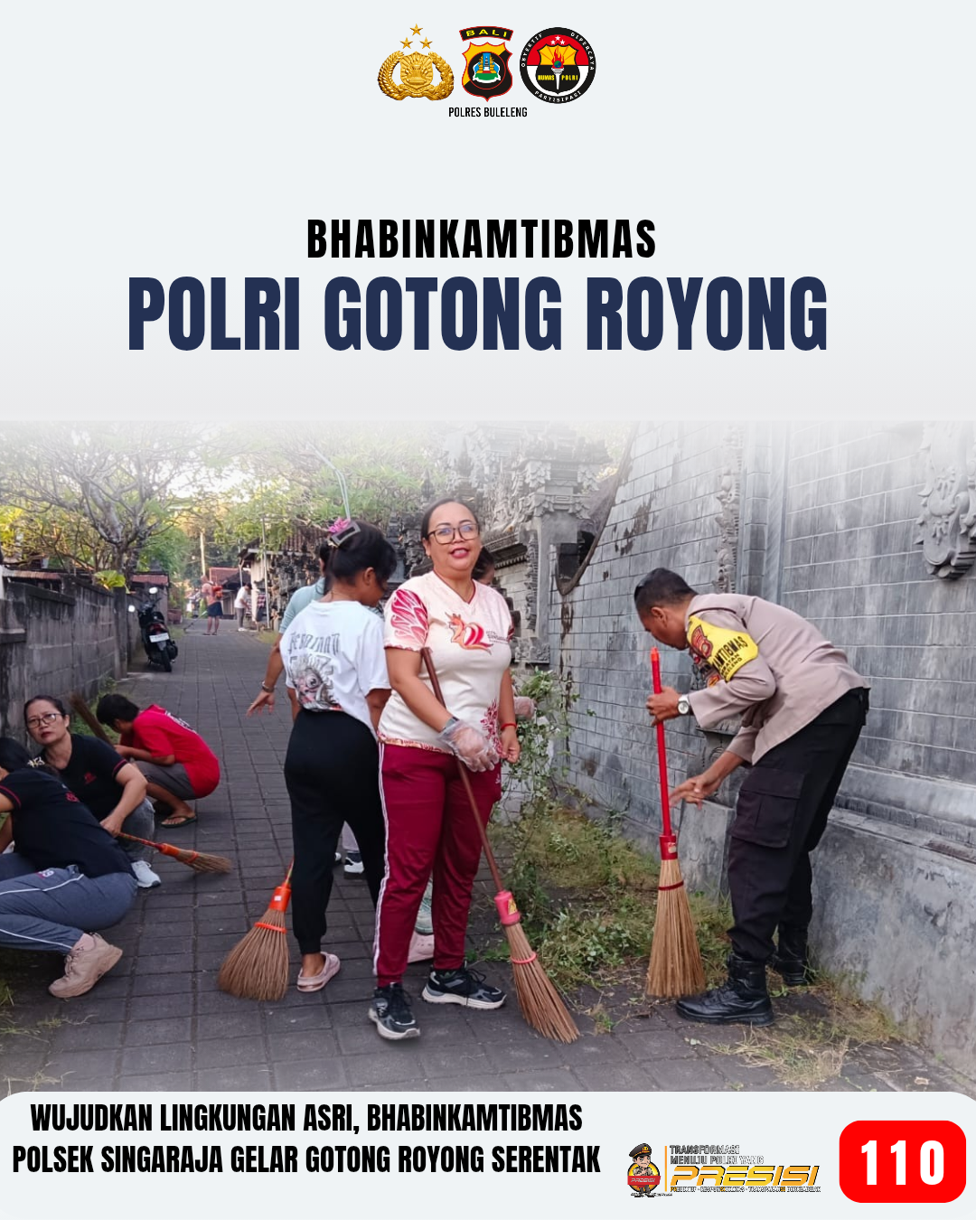 Kapolsek Singaraja, Kompol Gede Juli, S.IP., atas seizin Kapolres Buleleng, AKBP Ruzi Gusman, S.I.K., M.Si., M.Sc., menyampaikan bahwa keterlibatan personel Bhabinkamtibmas dalam gotong royong ini adalah instruksi langsung untuk mendukung program kebersihan wilayah.