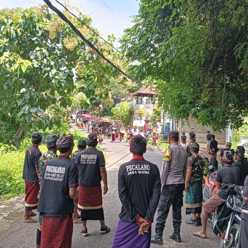 Dalam pelaksanaan tugasnya, Bhabinkamtibmas bersama Pecalang tidak hanya melakukan pengamanan di lokasi kegiatan, namun juga melaksanakan pengawalan serta pengaturan lalu lintas terhadap iring-iringan warga yang mengusung wadah dari rumah duka menuju setra desa adat setempat, sehingga seluruh rangkaian upacara dapat berjalan dengan tertib dan lancar.