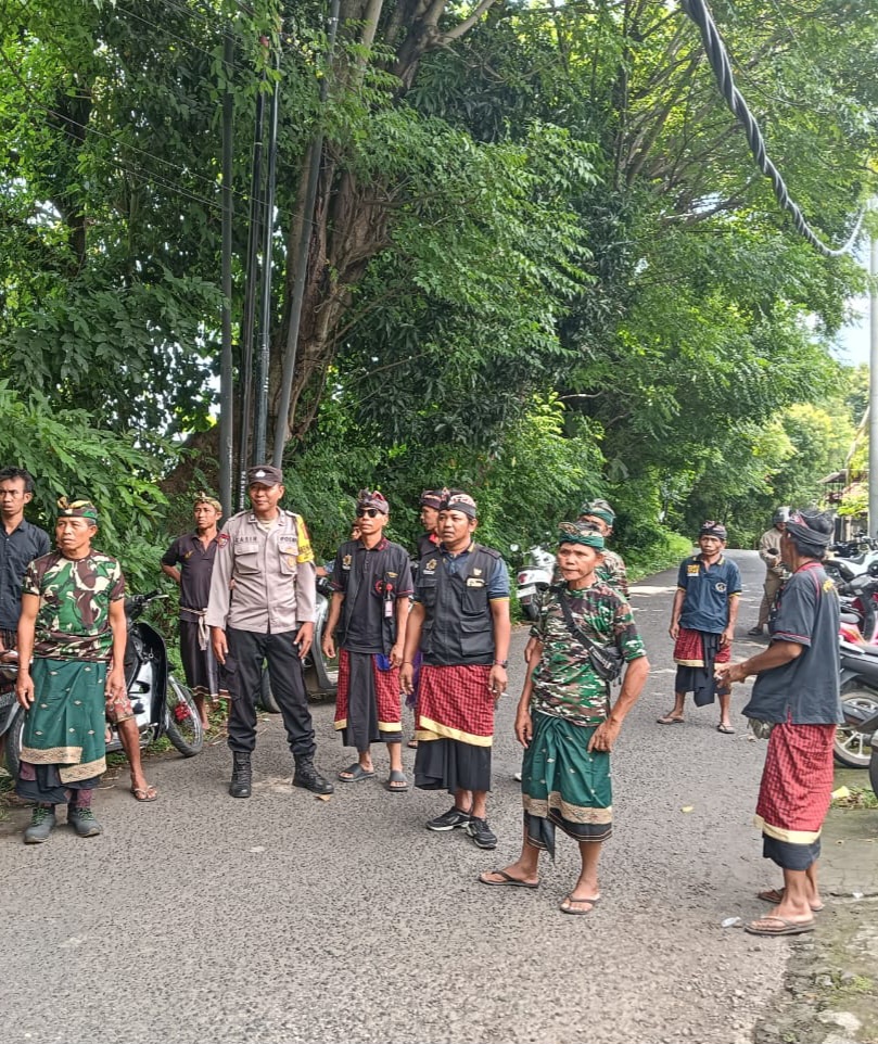 Sukasada – Bhabinkamtibmas Desa Selat Polsek Sukasada, Aiptu Wayan Kasih bersama Pecalang melaksanakan kegiatan pengamanan upacara Pitra Yadnya warga yang meninggal dunia di Desa Selat, Kecamatan Sukasada, pada Rabu, 15 April 2026.