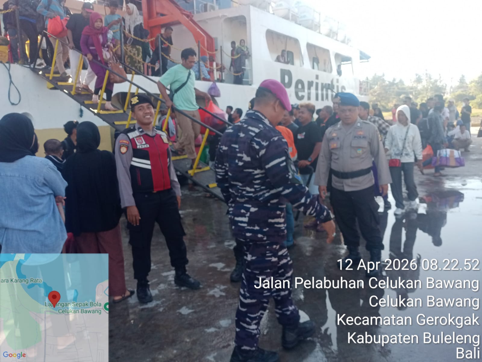 Celukan Bawang – Aktivitas arus balik penumpang melalui jalur laut di Pelabuhan Celukan Bawang, Kecamatan Gerokgak, mendapat pengamanan ketat dari aparat gabungan pada Minggu (12/4/2026) pagi. Kedatangan Kapal Perintis KM Sabuk Nusantara 51 dari Pelabuhan Sapeken (Madura) menjadi perhatian utama, mengingat tingginya jumlah penumpang yang turun di wilayah tersebut.
