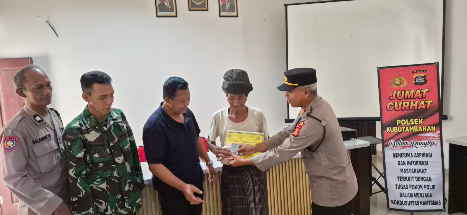 Sebagai upaya untuk mempererat silaturahmi serta menampung saran, masukkan dan mendengar keluhan serta aspirasi masyarakat khususnya terkait pelayanan Kepolisian. Polsek Kubutambahan menggelar kegiatan Jumat Curhat dengan warga Masyarakat Desa Bukti.