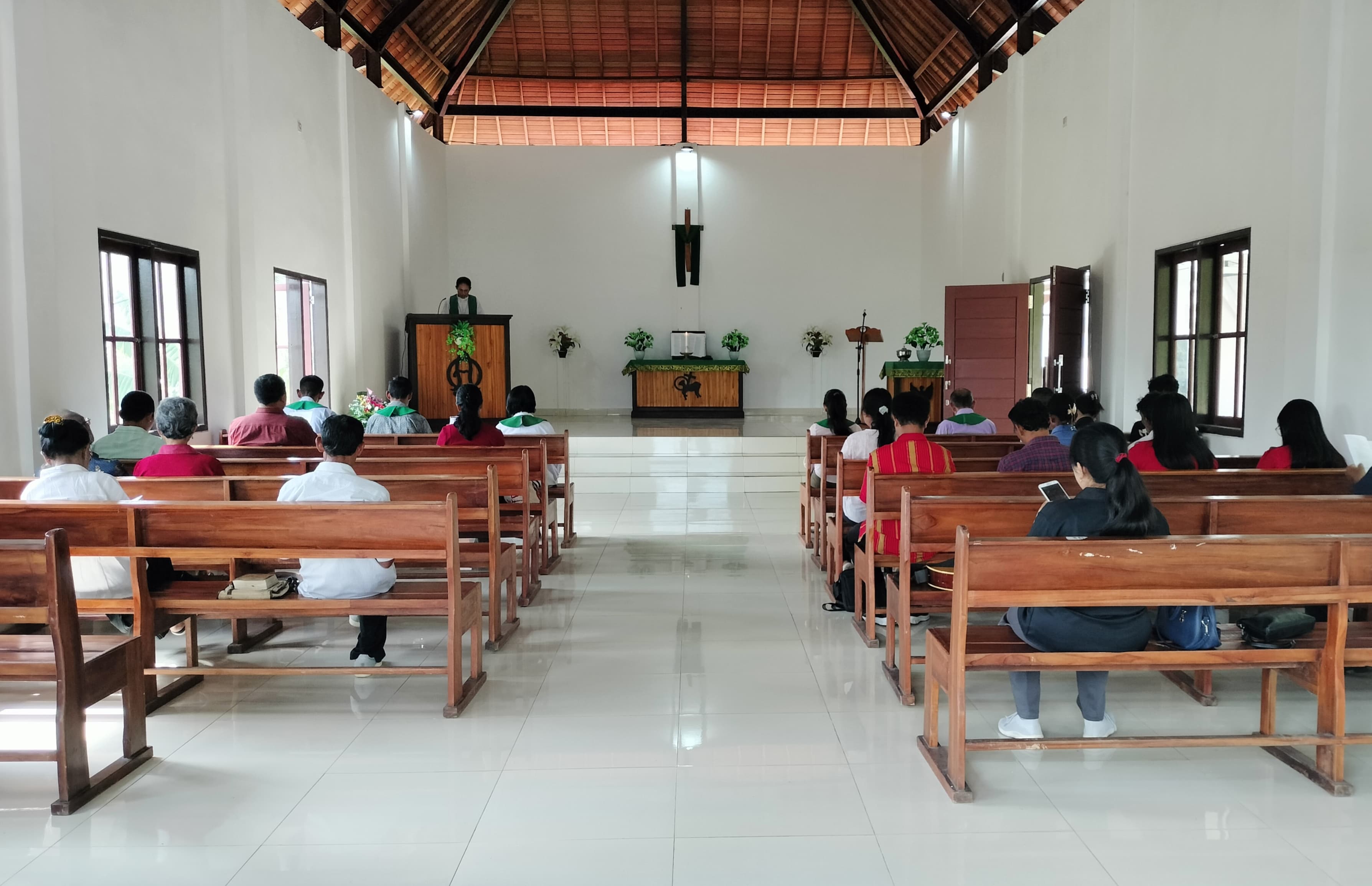 Sekitar 25 jemaat bersama majelis gereja mengikuti rangkaian ibadah yang dipimpin oleh Pendeta Agustina Pattipeilohy, S.Th. Seluruh prosesi berjalan tertib, mulai dari pujian pembukaan, doa, pembacaan firman Tuhan, hingga penutup dan berkat.