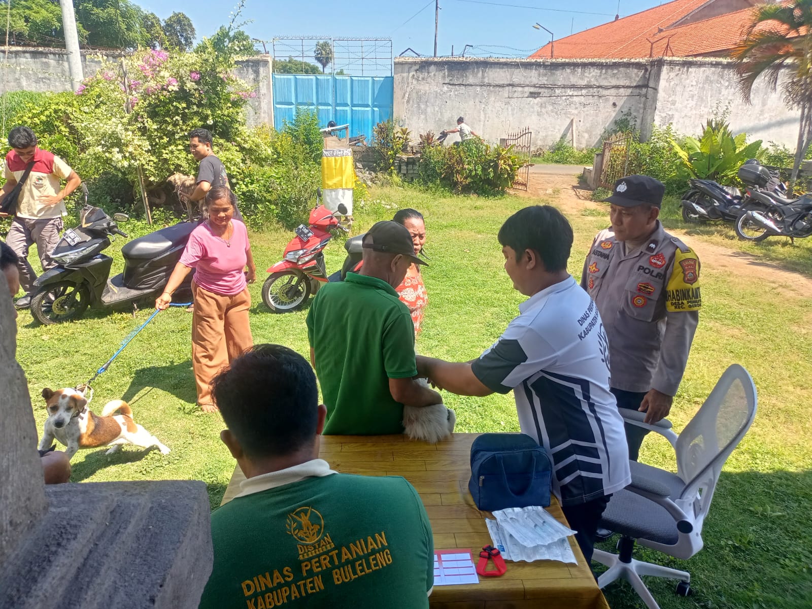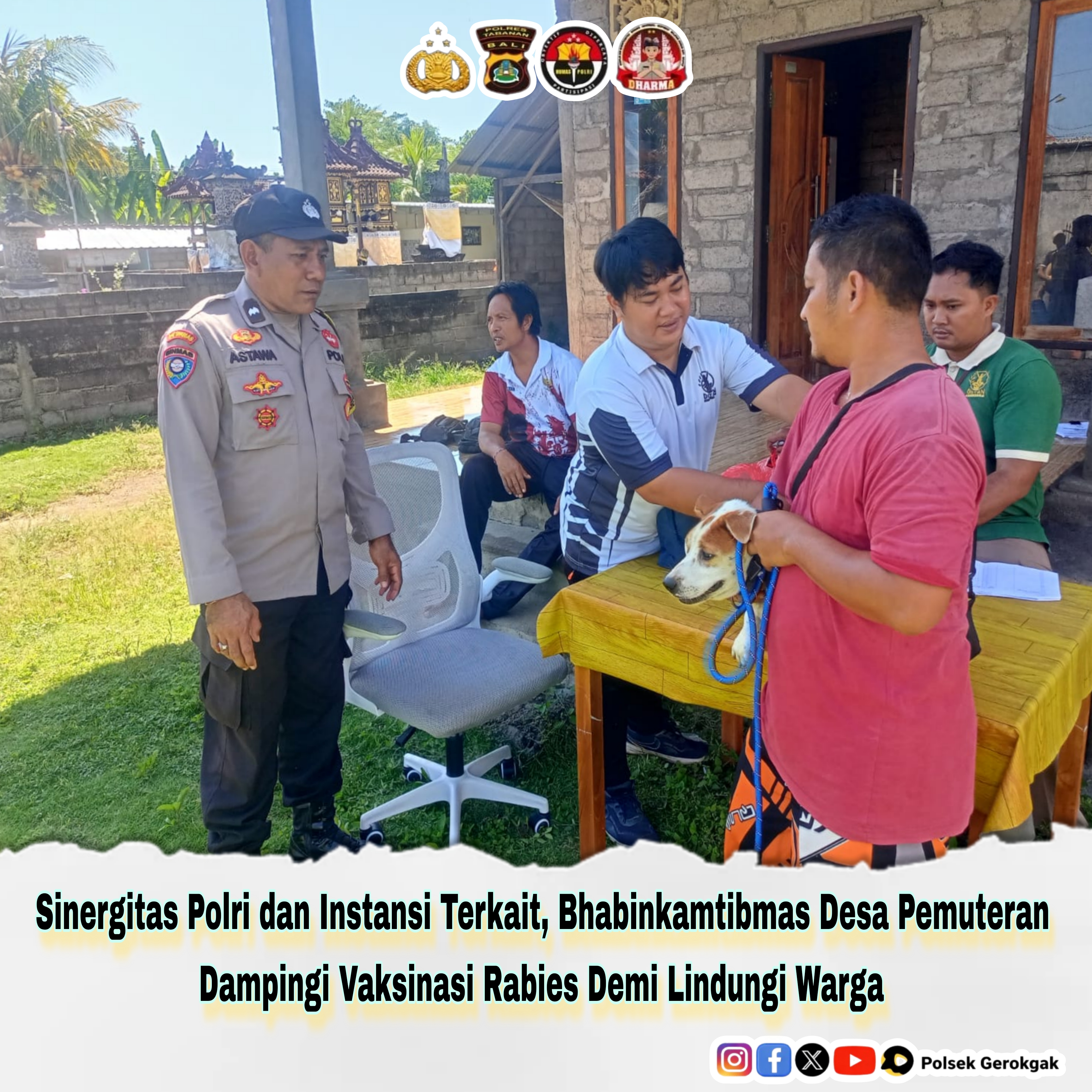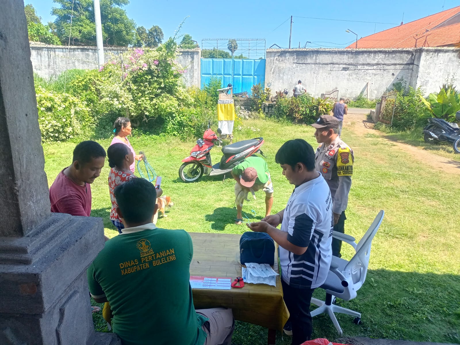 Gerokgak - Pada hari Rabu, 15 April 2026 pukul 10.00 WITA, Bhabinkamtibmas Desa Pemuteran Aipda I Gede Astawa bersama Kepala Dusun Kadek Sudana melaksanakan pendampingan kegiatan vaksinasi rabies yang dilakukan oleh Dinas Pertanian Kabupaten Buleleng (DISTAN).